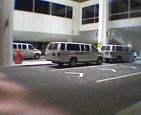 We moved our possessions to and into the car. Once again, it was a gold-colored sedan. I am beginning to wonder if I look like a guy who absolutely wants one -- or is it just that this is the ultimate rental car stereotype? Like before, this had some neat gadgetry (compared to my French car anyway). The key ring had, besides the obvious remote locking and unlocking of doors, a remote horn (no doubt to help you find your car from the US-size car parks, comparable to European airports) and a remote trunk opener. The windows and seats were naturally electric and the transmission automatic. The funniest one was undoubtedly the foot pedal level adjustment! Upon leaving the parking lot it also became obvious why the keys can be kept in the car. We had to show the car papers to the guard in the booth at the exit before he raised the barrier and lowered the tire-hungry huge spikes under the driveway. As I tried to get used to resting my left foot instead of using the brake pedal as a clutch (with success but not immediately...), Teemu punched the address of the hotel into the GPS. Now, I don't want to sound like a commercial, but a navigational device is really invaluable in a foreign city. A paper map can be quite difficult to handle in the dark and almost impossible if you are driving alone. The GPS talks to you in plain computer English ("freeway - exit - in - one - point - five - miles"), warns about fork intersections and tells which way to stay and even quite often is relatively right; the latter meaning that despite its capabilities, it is not yet a replacement for common sense. Highly recommended, regardless. After some 30 minutes on the freeway, we found the hotel -- right next to the freeway, close to downtown Houston. The GPS showed its uglier side by announcing "right - turn <ding>" the very second we should have turned, so we had to resort to some extra sightseeing in the vicinity, and GPS quite soon stated to be calculating - a - new - route. On the bright side, the involuntary study of the surroundings was useful to get a grasp of the area close by, and in the process we also noticed being hungry, so the expedition was redirected into finding a suitable fast food joint. They were surprisingly scarce in this area (or we were just bat-eyed); however, we finally found one and parked outside. We went and tried the door but the seating part was already closed. We walked to the drive in order and tried to talk to the microphone, no results. Maybe a car was required to turn the system on. Walked to the window and tried to knock; the lady ignored us, and we noticed the sticker in the window stating that no orders are taken through the hatch (or something along those lines). Bottom line: if you don't have a car we won't sell you a hamburger. Brilliant! So we walked back to the car on the other side of the small building, drove to the ordering point, ordered, drove to the hatch and got our hamburgers. Then we drove back, parked, got out of the car and ate the burgers. Talk about a car country! Having satisfied the craving for animal fat, we drove to the hotel and checked in. Lights out.