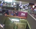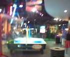So back to the hotel to pick up my companion it was. Teemu had recovered and was ready for a shopping spree as well. We had already yesterday made a plan for today to visit a huge mall known as the Galleria. We checked the destination from the sketchy map we had and turned our hood ornament (if the car had one, that is) in that direction. After some extra roadwork-induced wanderings, we found Richmond Avenue, a key ingredient in the recipe to get us to the mall. Actually the grid layout of the streets should have been extremely simple but we were somewhat thrown off, besides the constructions, also the freeway turning and messing up the grid at a strategic location. The intersections around these parts of the city had quite fancy round chrome street nameplates suspended in the air above the middle of the junctions. A careful look at the pictures below also reveals that some of the traffic lights have four lights, the reason for which is something that never became quite clear to me. In this case I somehow doubt that it is solely because of the big is beautiful philosophy. Eventually we reached the target and parked the Batmobile in the enormous parking house below ground, making a secure mental note of the location. Having skipped breakfast (and eating being a central theme in our existence anyway), we once again set out in search of food and found a fast food restaurant area on the lower floor of the mall. Teemu once again opted for the safe hamburger, although his attempt to pay by credit card proved to be a complicated choice, basically a do-it-yourself method completely foreign to us. I strolled the booths and was lured to a Chinese pork-or-something by a free sampler turning out to be yummy. Not a bad choice. Next to the feeding area there were a few carts selling jewelry and phone accessories. Teemu's greedy eye got caught on a heavy silver chain necklace, which indeed changed ownership after some financial negotiation, and disappeared under his shirt. Dammit, why is this guy hauling a ton of metal on his neck and keeping it hidden so that no one knows it is there? We moved on and came to... an ice rink! After collecting the dropped jaws, it somehow made sense to have the rink where people are, but the energy economics of a rink in room temperature and direct sunshine from the glass roof two floors higher must be somewhat unfavorable. Well, oil is cheap... Further excursion revealed more curious details. A US flag some half a dozen stories tall was hanging up high from the office tower in the middle of the mall. There was also a fountain dropping seemingly random sprinkles of water from the roof of the 2nd floor to the big bowl on the ground floor. We even took a ride in a glass-walled elevator to see a glimpse from above. Unfortunately we could not get too high because the offices on the top floors were locked and the buttons were not selectable. In the commercial area we found a toyshop with a severe closing down sale, everything with at least 50% price reduction. Teemu's American car collection was once again gaining more momentum, and even I gave up for a surge of nostalgia and bought two 1:25 plastic model car kits, the kind of which I used to put together at the age of 15, actually getting quite good at it before quitting, more for lack of time than lack of interest. I'll try to fit those into my next decennary plan -- but no guarantees. Our time was starting to run out, but before leaving for the car, we still took a brief stroll in the gaming arcade at the bottom of the mall. The place boasted of all kinds of weird games, pleading to insert one or (usually) more quarters for a moment of fun. One of the weirdest was a disco dancing game, where the player was supposed to step on plates of different color according to the information scrolling on the screen; all this to music. Local kids seemed to do well; we did not dare a try -- in any game.