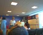After some searching we found the car indeed. A more difficult task was to locate the way out of the parking house, but on approximately third round we succeeded in that as well. We set course for the airport, Teemu was taking me to continue to my next destination, Phoenix. The road to the airport was only freeways and simple, with the exception of the final turn to the rental car parking, which had a huge sign but was so unclear that even after passing it we wondered whether it meant that we should have turned right or not. Second try and the right turn yielded expected results and we reached the rental parking. Teemu had changed his original plan to leave for home today and decided to stay half the next week as well to continue with the work, so I left him to negotiate rerenting a car. After quite a bit of arm-twisting, he got one -- but a different one, less to his taste and with a semifunctional GPS only -- should have reserved earlier. I took the shuttle bus to the terminal with my suitcase, computer briefcase and shoulder bag, and went searching for the check-in point of my selected airline. Finding it was a no-brainer, and I did not even have to waste time queuing due to the lack of queue. The only surprise was when the check-in lady announced that my case was a few pounds overweight. The solution to avoid the overweight fee of $50 was to move some items to the hand luggage, which I did. I wonder, by what magic the plane got lighter this way? Apparently it also would have been OK to have two checked-in items weigh as much as the one case did, makes just as much sense.