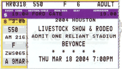 Firstly, we navigated the route from the plant to the stadium, according to a map we were given. The road was reasonably simple and we managed not to mess up too badly. Teemu seemed to suffer from acute driving modesty so I was once again given the wheel. Getting closer to the event, it was becoming quite a traffic jam -- no wonder since the stadium seats a mere modest 80,000 people -- that's more than half the population of whole Turku! However, we got there and found our designated parking lot with surprising ease considering all the people buzzing around the area. At first we were quite amused at the small rubber-wheeled train transporting people seemingly to and from the stadium but after empirically learning that the distance to the parking lot was nearly a mile (that's 1,609 meters for the SI system advocates, but we're now in the conservative USA so meter is a non-unit) and that the train actually took a ride through the whole rodeo fair area, quite a bit more that just the stadium itself, it made more sense. Walking to the stadium was not a problem anyway; the target was well visible even from a distance. Getting in was way more difficult -- or rather, finding the right way to get in. The first try was what looked like some kind of a main entrance right in the middle, next to the statue of the poor deformed hoofless raging bulls. In hindsight, the lack of crowd should have signaled us, but the officials at the very latest made the case quite obvious when asking for our VIP passes. On the other side of the stadium there was a whole [portable, I believe] amusement park with a Ferris wheel and all. At the corner there was another entrance and we went in with a bunch of brownie girls. Apparently this one was some kind of group entrance, since quite soon somebody came to us and asked whether we really were a part of the party. Swept out and armed with some instructions where to go we finally proceeded to the right gate -- one that actually looked suspiciously similar to those we were already used to at home. Now we were inside the fence. We still had to determine how to get into the stadium itself. At the corners of the building there were huge car-sized ramps leading to the various levels of the stadium. For the weak-legged or lazy there were also escalators but we opted for the slightly longer bit more scenic driveway. Inside, the corridor around the hall was of sufficient size for a small car race (with regular-size cars). As expected, there were concession stands serving fast food and beer and also other beverages, should you want to opt for those. Equally as expected, everything was priced for maximal profit for minimal sales, well keeping in mind the fact that people would not be able to get out to greener pastures anyway. Toilet facilities included, besides the obvious ladies and gentlemen, a third stall for neuters... er families. A large portion of the people were really dressed according to the requirements of the event: boots, a fringed suede coat and a wide-brimmed Western hat was a typical attire. Lacking such necessary basic equipment, I felt a little touristy, naked and out of place. The hall was absolutely huge. People and animals looked like tiny ants somewhere down below on the arena. The seating arrangement was quite a regular stadium-style solution, steep and scary concrete steps, plastic seats (undoubtedly the more upscale seats far below were padded and lined with leather and lace, probably even gold-rimmed). Above our heads we could see equally huge machinery used to open and close the retractable roof but unfortunately we did not get a live demonstration of the operation; the roof remained a roof. The rodeo event itself was... well, a rodeo event. Stetson-headed cowboys and cowgirls were riding wildly bucking horses and even wilder bulls, poor little calves were chased, lassoed and roped and there was even a wagon race. The colossal four-way display pane hanging on top of the middle of the arena was very useful in trying to follow what the insects in the arena were up to at any time. The performances were judged based on time and probably sometimes also esthetics and during the show there was a winner (of the evening) in each sport. Not having grown in the rodeo country, this whole business seemed a bit pointless maltreatment of especially the calves (OK, admittedly most sport activities seem quite pointless to me). So, as already stated, interesting to see once but not really willing to go twice. However, the historical meaning of the rodeo is obvious, a memory from the era when horse and man were the only available tools in cattle business. The second half of the evening program was the concert. A rotating stage with mock-Greek pillars was wheeled into the middle of the arena while having some side program in the form of a (semi-)famous astronaut being horse-carriaged around the ring to convey the greetings from the Houston NASA base. Towards the end of the rodeo and during the setup break, the crowd had been clearly growing younger and more girly, an obvious difference to the adult-heavy mix of the beginning. The lights went out and the concert began with The Star-Spangled Banner, ending with quite a spectacular fireworks display (..."the rockets' red glare, the bombs bursting in air"...). Now that everybody was attuned to the mood, we were first treated an opening act. Headliner Beyoncé's Destiny's Child groupmate Michelle Williams, dressed in all white, was driven in a convertible from the edge of the arena and carried the remaining few steps onstage. She sang a handful of more or less traditional-sounding tunes in the r&b/soul genre, alone, to a backing track. A pretty good singer, although I was a little annoyed by the constant ornamentation (i.e. artistic wavering and twisting around the melody notes) -- but that is also a part of the tradition. The crowd did not go wild on her though, but rather applauded politely, obviously in wait of the now bigger 